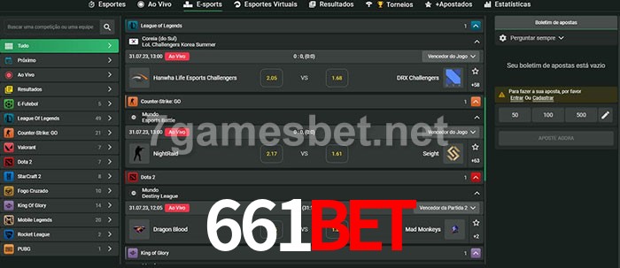 O 661Bet oferece uma grande seleção de opções de apostas em e-sports com probabilidades competitivas